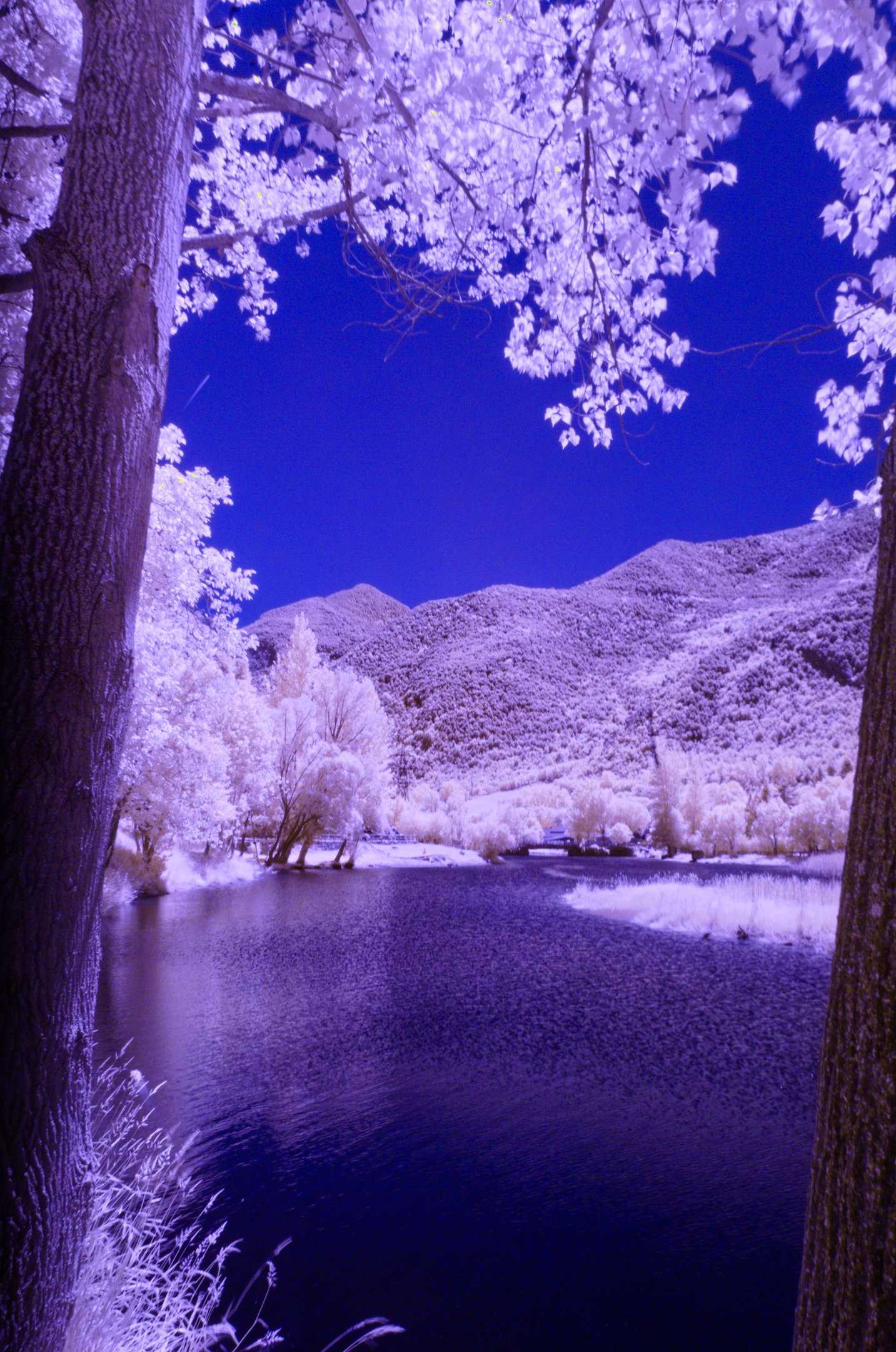 La fotografía infrarroja revela un mundo oculto que solo la luz más allá del espectro visible puede iluminar. Aquí, los paisajes se transforman en escenarios de fantasía: cielos profundos que rozan el negro absoluto, hojas que destellan como nieve eterna, y aguas que se convierten en espejos surrealistas. Es un vistazo a una realidad que está ahí, pero que nuestros ojos nunca alcanzan a ver.