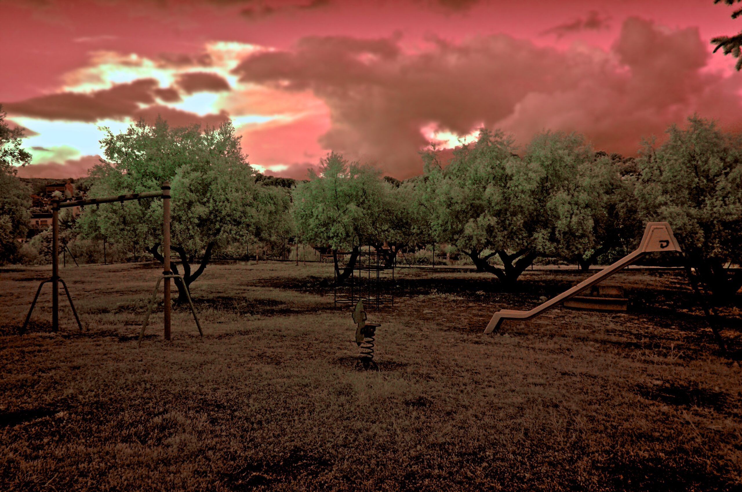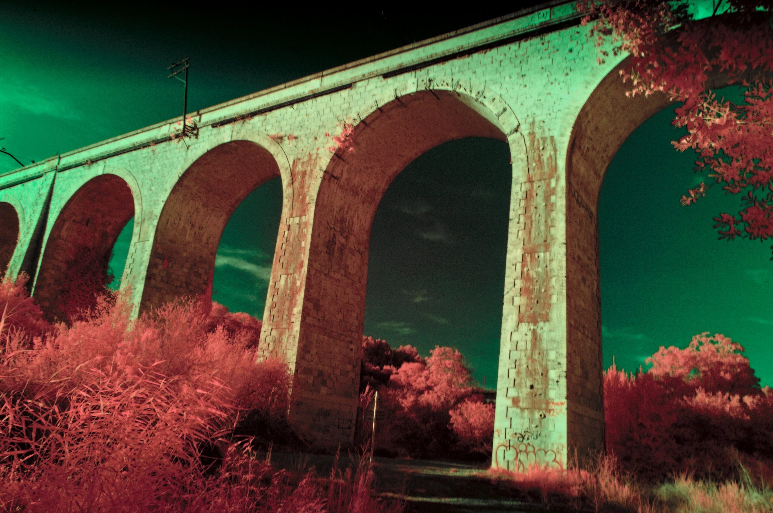 Todas las imágenes de esta colección han sido capturadas con una Nikon D3100 especialmente modificada por mí mismo, un trabajo que combina pasión, precisión y curiosidad. Utilizando filtros de paso entre 620 y 710 nm, esta cámara es capaz de explorar los matices del espectro infrarrojo, desde el misterio de los tonos rojizos hasta los contrastes más dramáticos.