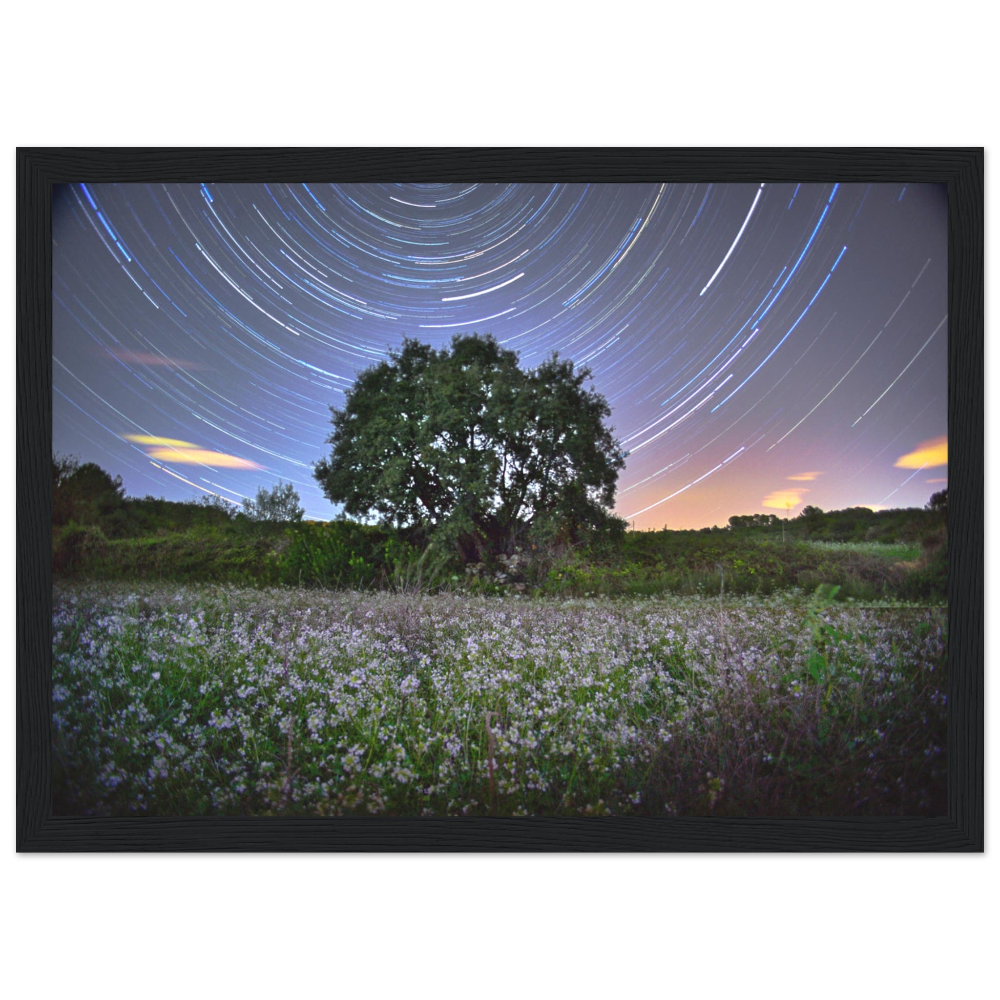 «Bajo el manto nocturno, un árbol solitario se alza como guardián del